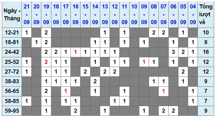 • Chiều qua xuất hiện 04 bạch thủ trả về ⇒ theo phân tích chiều nay sẽ ra 12 – 21