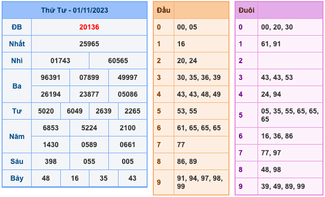 - Hôm qua về lô 65 => Soi Cầu XSMB 2-11-2023 sẽ có: 59 – 95 và 09