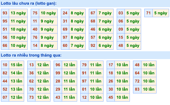 Dữ liệu chúng tôi phân tích tiếp theo đó chính là lô gan. Nếu anh em chơi lô đề hàng ngày thì không thể bỏ qua việc phân tích lô gan lâu chưa ra. Sau đây mời anh em cùng theo dõi những con lô gan lâu chưa về ở bảng bên dưới.