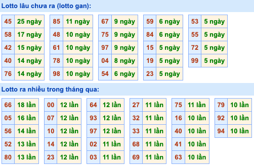 Dữ liệu chúng tôi phân tích tiếp theo đó chính là lô gan. Nếu anh em chơi lô đề hàng ngày thì không thể bỏ qua việc phân tích lô gan lâu chưa ra. Sau đây mời anh em cùng theo dõi những con lô gan lâu chưa về ở bảng bên dưới.