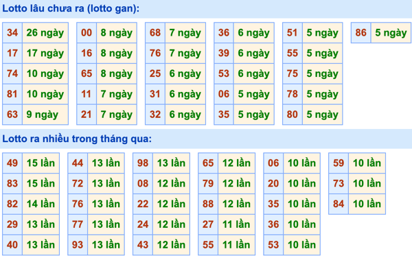 Dữ liệu chúng tôi phân tích tiếp theo đó chính là lô gan. Nếu anh em chơi lô đề hàng ngày thì không thể bỏ qua việc phân tích lô gan lâu chưa ra. Sau đây mời anh em cùng theo dõi những con lô gan lâu chưa về ở bảng bên dưới.