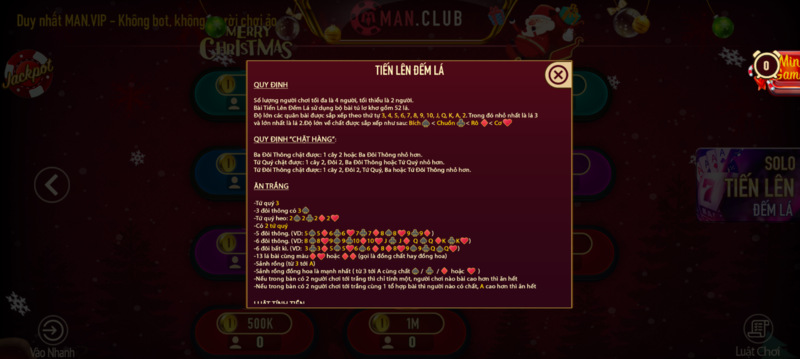 Quy định cần biết tại Solo tiến lên đếm lá Man Club